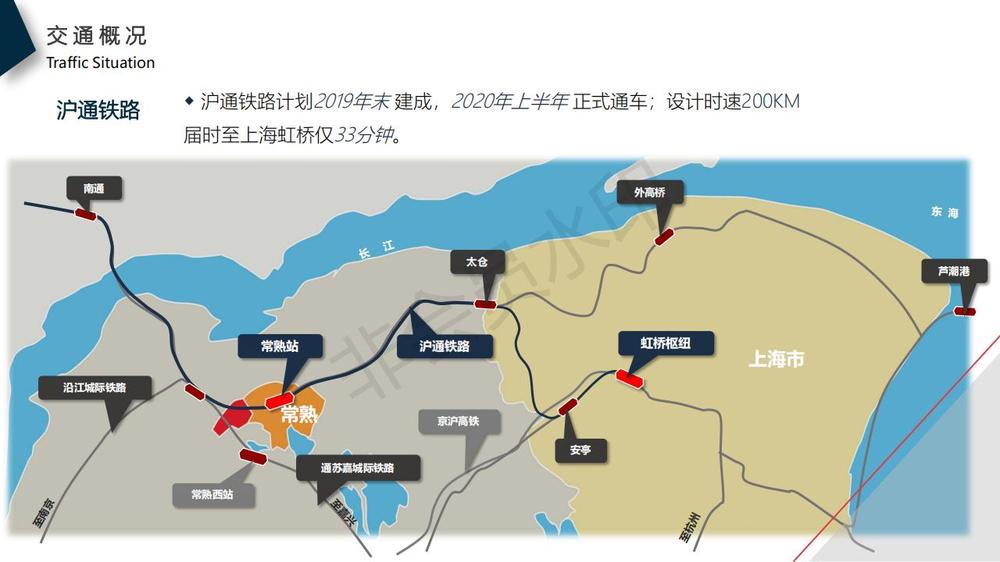 ◆ 苏南沿江高铁与沪通铁路并行,在常熟共用站点,设计时速350KM,建成后至上海虹桥仅需23分钟。